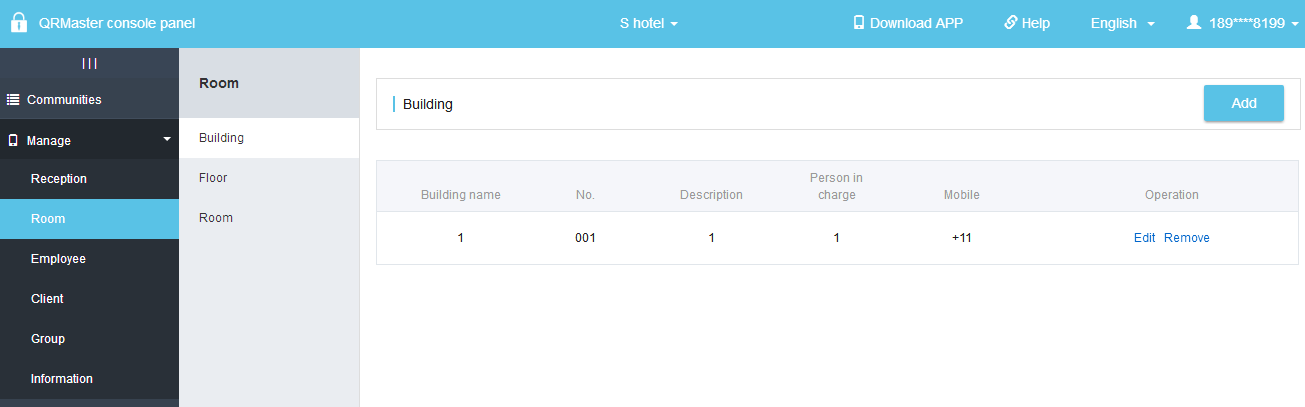 Step 1: select 'Room' — 'building' — 'add building' and input building information.